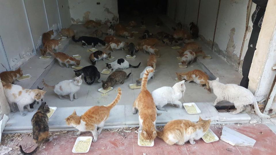 Mohammad alone feeds the 200 cats, and a few dogs, at the sanctuary every day. With the help of donations and his own resources, Mohammad provides a much-needed home to the forgotten cats of Aleppo.